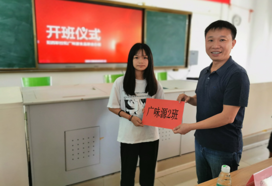 廣味源公司許業(yè)??偨?jīng)理為校企合作的兩個(gè)班授班牌。