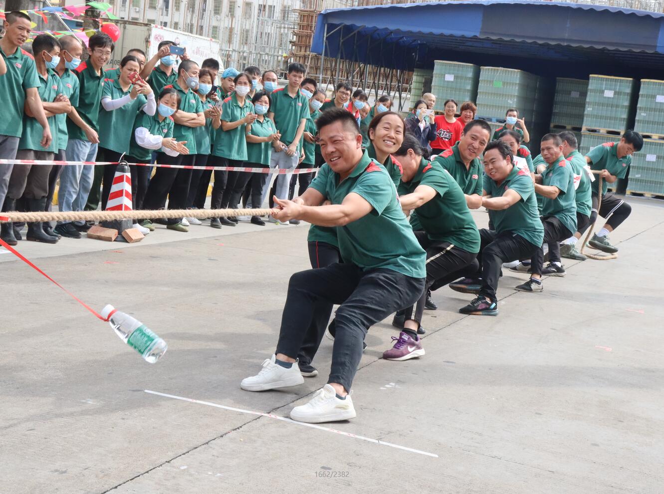 此次運(yùn)動(dòng)會(huì)比賽項(xiàng)目分為團(tuán)體賽,有“4*100米接力賽”、“ 巨人腳步”、“ 縱橫天下”、“ 風(fēng)火輪”和“ 拔河比賽”,由各部門、生產(chǎn)車間員工報(bào)名參加。本次運(yùn)動(dòng)會(huì)秉承團(tuán)結(jié)、和諧、拼搏的宗旨,在緊張而有序的氛圍中開展。運(yùn)動(dòng)員們矯健有力的身姿,充分展現(xiàn)出廣味源人的團(tuán)結(jié)一致、協(xié)作配合的和諧狀態(tài)。同時(shí),具有廣味源人特色的企業(yè)文化更是體現(xiàn)得淋漓盡致。各隊(duì)運(yùn)動(dòng)員反應(yīng)敏捷、動(dòng)作迅速、配合默契,拉拉隊(duì)各顯神通,整齊的吶喊為本隊(duì)的運(yùn)動(dòng)健兒們加油助威,現(xiàn)場的歡呼聲一浪高過一浪。特別在拔河比賽中,幾乎所有員工都沖到比賽場地,為運(yùn)動(dòng)員們吶喊加油。