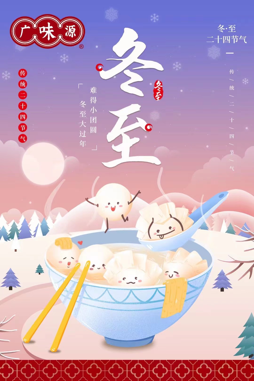 2022年12月22日即今天是一年一度的冬至,冬至是中國農(nóng)歷中一個(gè)非常重要的節(jié)氣 冬至為農(nóng)事節(jié)氣,意為寒冬已到。在這一天有北方吃餃子、南方吃湯圓的習(xí)俗,為傳承中華民族的優(yōu)良傳統(tǒng)。公司食堂晚餐為員工準(zhǔn)備了餃子,增強(qiáng)員工的凝聚力和歸屬感,讓大家都感受到了廣味源大家庭的溫暖和關(guān)懷!