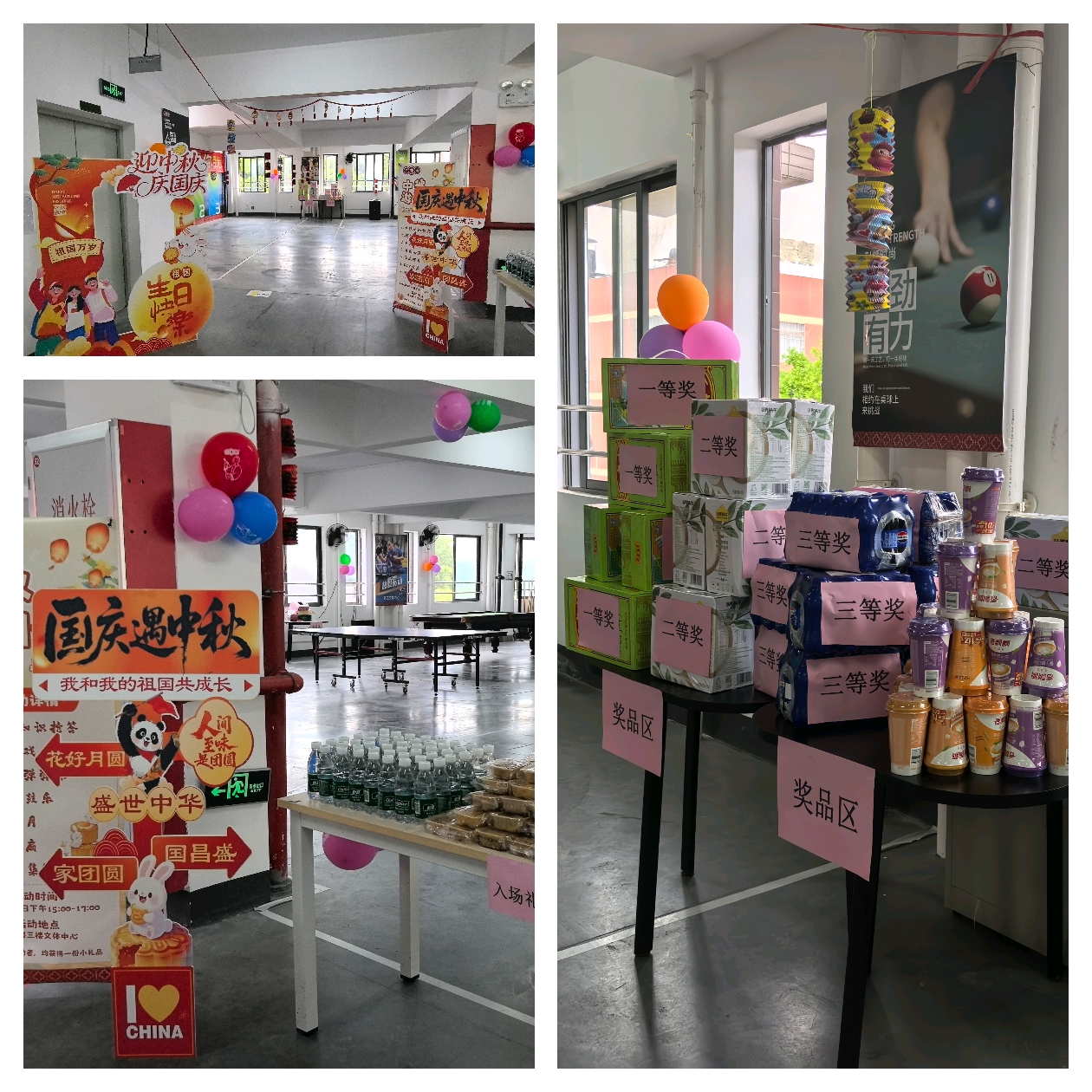 活動當天12:00,在各部門的大力支持及協(xié)助下,現(xiàn)場懸掛燈籠、布置喜慶KT板,從視覺上營造國慶、中秋團圓氛圍。