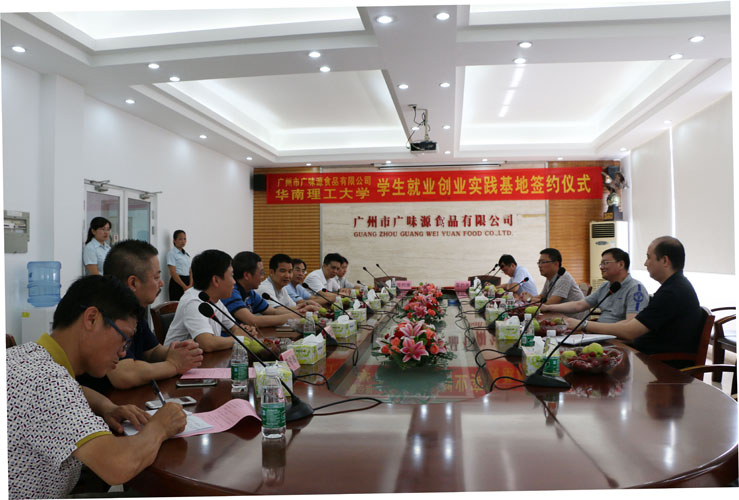 2016年6月15日,在化龍鎮(zhèn)委鎮(zhèn)政府的關心和指導下,在化龍鎮(zhèn)主管部門的直接協(xié)調(diào)下,華南理工大學與廣州市廣味源食品有限公司達成了校地共建的第一個項目——“廣州市廣味源食品有限公司與華南理工大學共建學生就業(yè)創(chuàng)業(yè)實踐基地”,校企雙方在廣味源公舉行隆重而簡約的簽約、揭牌儀式。