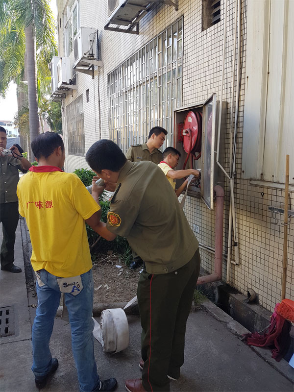 為增強(qiáng)員工的消防安全意識(shí),提高員工應(yīng)對(duì)險(xiǎn)情、自救逃生的能力,使每名員工都能學(xué)習(xí)和掌握到一定的消防知識(shí),創(chuàng)建和諧平安企業(yè),我公司按照年度演練計(jì)劃,于2016年10月27日下午邀請(qǐng)化龍鎮(zhèn)消防大隊(duì)消防員對(duì)公司員工進(jìn)行一次消防演練活動(dòng)。此項(xiàng)演練內(nèi)容包括:消防知識(shí)普及、緊急疏散、消防栓使用、現(xiàn)場(chǎng)模擬消防滅火(油桶著火、煤氣罐著火)等。